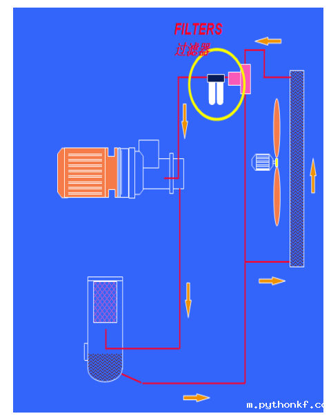 冷却系统包括空气冷却器(后冷却器)和油冷却器(前冷却器),两者均由电机上的风扇冷却。后冷却器特点: