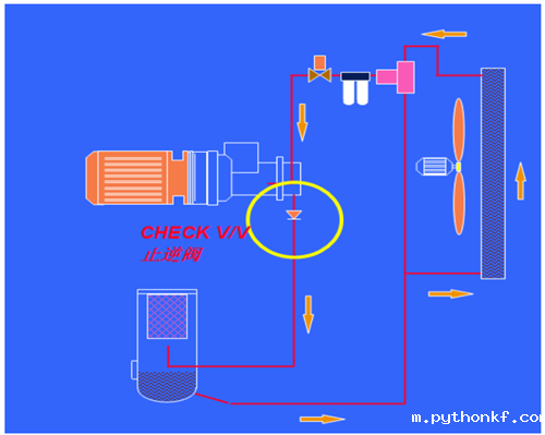 止逆阀:防止反转以及停机时冷却油进入主机