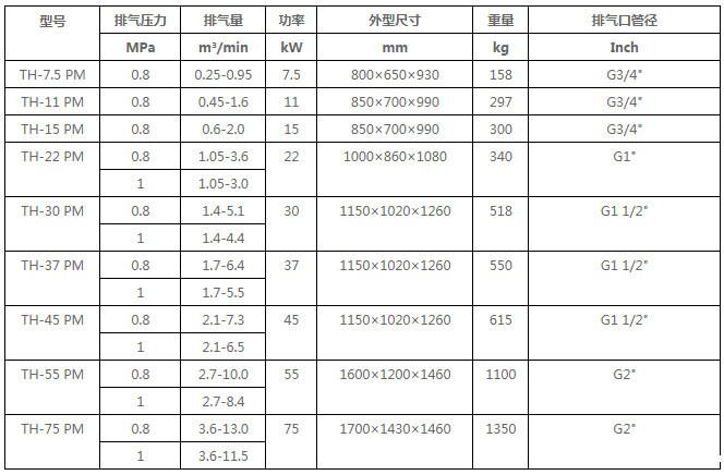 整机特点 添锐TH PM系列永磁变频压缩机装备了高效永磁电机,节能性能卓越,运行平稳,噪音低,使其能在用气点就近安装。