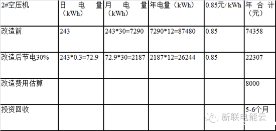 只需花费8000元改造,空压机电费一年便可减少30%,约22307元。