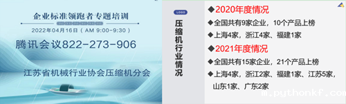 线上团标宣贯这一新颖的活动模式,被压缩机网评为压缩机行业2022年四月份重点新闻,受到行业内企业的密切关注。