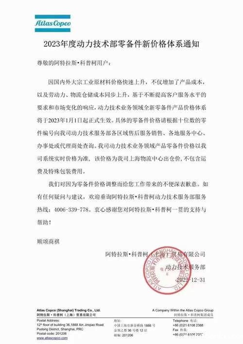 2026年的世界杯2023年度动力技术部零备件新价格体系通知: