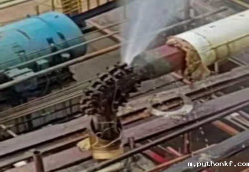 13时24分10秒,在新夹具两侧各安装紧固1套螺栓时,原夹具水平端的管道焊缝处突然断裂,大量介质从断口喷出。现场监护人员立即向外疏散并安排烷基化装置内操人员紧急停车.