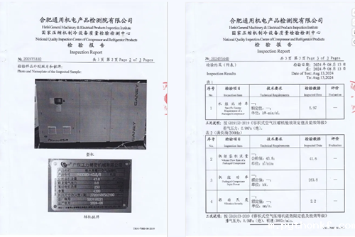1、两级喷水单螺杆空气压缩机最核心的亮点是:相对单级压缩机具有更高效、更节能、更环保,40立方系列两级喷水单螺杆空气压缩机,邀请行业公认权威测试机构测试其中的200、220、250kW水冷永磁变频机组,报告如下图所示,机组输入比功率达分别为6.07、6.07、5.97kW/(m³/min),其中200与250kW的机组输入比功率数值相当达到《容积式空气压缩机能效限定值及能效等级》(GB 19153-2019)变转速喷油回转压缩机的同档功率的一级能效值,是无油容积式压缩机的节能明星产品。