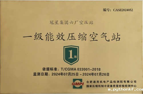 鑫磊股份正式挂牌“一级能效压缩空气站” ,赋能企业节能升级
