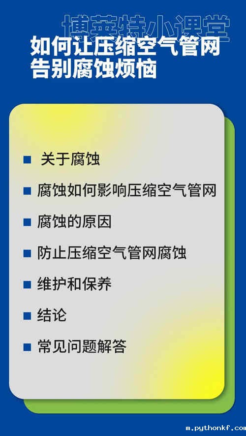 在压缩空气管网中,腐蚀问题不容小觑,它不仅会导致系统效率降低、气流受限,还会使压缩空气中混入杂质。本文将为您详细介绍防止压缩空气系统腐蚀的方法,以及设备的有效维护策略,帮助您保障压缩空气系统的稳定运行。