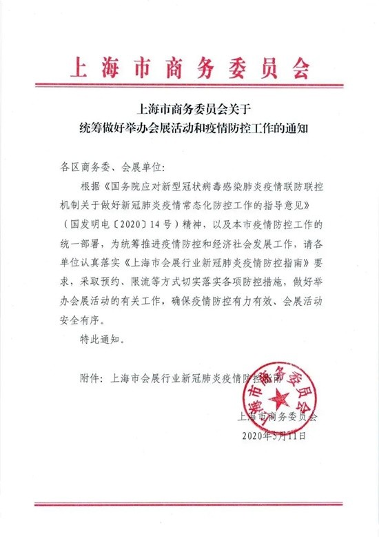 据国务院疫情联防联控机制2020年5月7日最新文件,已明确提出可举办各类必要的会议、会展活动等!上海方也出具了相应的疫情防控工作通知!所以ComVac ASIA目前不会取消,也不会延期。