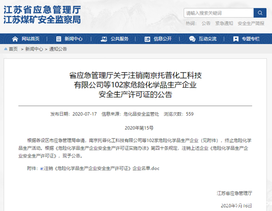 疫情已经令不少企业因长期停产无法生存,而疫情过后,为了环保和生产安全,各省开始对化工园和厂商进行“劝退”。江苏自从发生响水3.21事故之后,对化工行业的监督和整改越发严格。上周,江苏省宣布注销102家危化企业的生产许可证,终止不及格危化企业的生产活动。