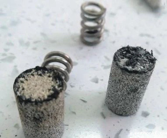 观察滤芯堵塞情况,发现胶质等杂物均聚集于滤芯端面上,回忆拆解过滤器时发现,过滤器芯安装错误,图3所示为错误码安装。与图1相比,弹簧与滤芯位置正好相反。