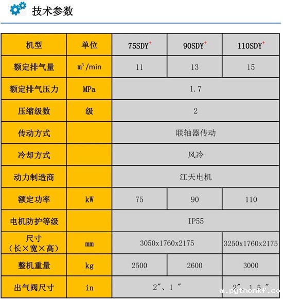 ③同功率下比单机压缩排气量提高10%,可实现10%的节能空间。