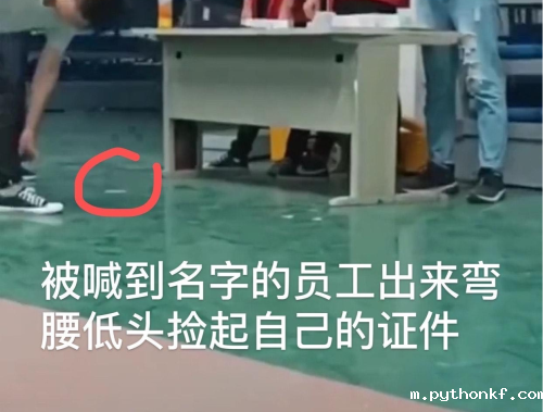 网友爆料的视频显示,三位身穿红衣,自称为公司培训干部的男子在工作台前负责分发员工证。