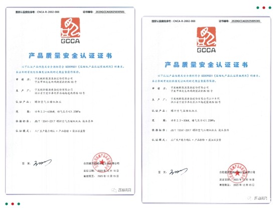 近日,鲍斯压缩机主机率先通过产品质量安全认证(GCCA),成为全国首家主机取得该认证证书的压缩机企业。