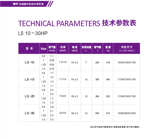 捷豹LS系列采用高压机专用主机,专门为高压机铸造的特殊排气口主机壳体。同时为了保证运行的稳定,选用高压专用轴承。专为激光高压机行业设计的特殊油桶内丹结构及高压油分,提高油气分离桶初分离效果。采用高级精密过滤器,保证输出气体纯净度,提高成品质量。同时,永磁变频能源节省可高达50%!