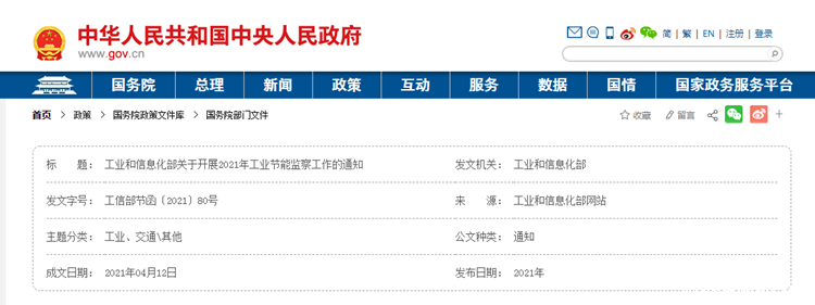 近日,工信部发布了《关于开展2021年工业节能监察工作》的通知。《通知》要求,对钢铁、有色金属冶炼、石化化工、建材等重点行业企业全面梳理排查,对本年度重点行业企业开展强制性单位产品能耗限额标准执行情况专项监察,2021年完成钢铁、水泥(有熟料生产线)、电解铝企业全覆盖。对电机、空压机、风机、泵、变压器、等重点用能产品设备用户企业实施能效提升专项监察,督促企业淘汰达不到强制性能效标准限定值的低效产品。力争在“十四五”时期实现重点行业企业节能监察全覆盖,助力碳达峰、碳中和目标实现。