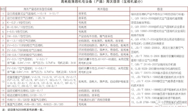 需要淘汰的高耗能落后空压机产品型号目录↓