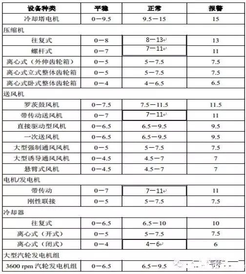 对于不上述范围内的设备,下表 “通频振动烈度的速度标准”可以提供相应的振动评价方法。