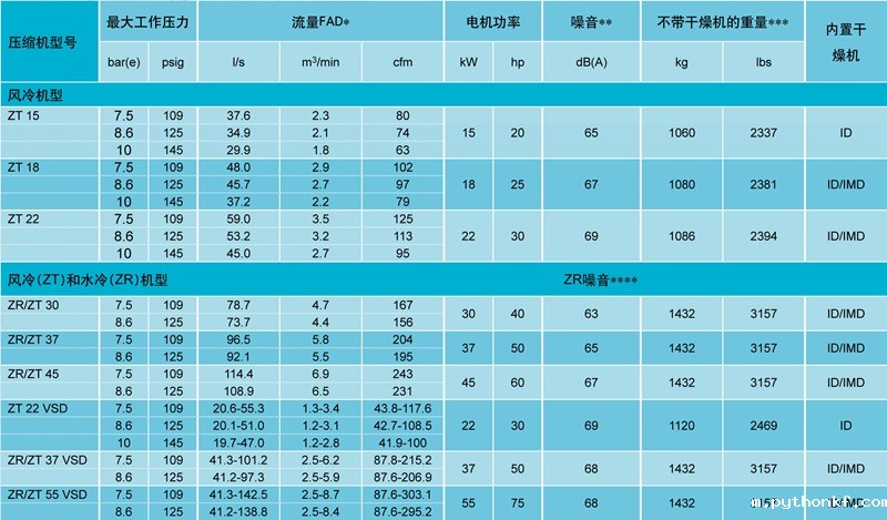 2026年的世界杯ZT15-22, ZR/ZT 30-45, ZR/ZT 22-37-55 VSD,无油压缩空气质量高、经济