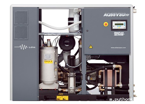 AQ 压缩机装有隔音机壳,因此适合在大多数工作环境中使用。无需单独的压缩机房。