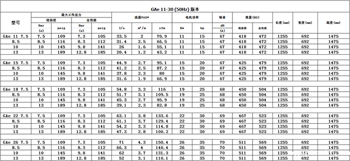 噪音低至67分贝,可以放置在用气点旁边,减少安装成本,降低空气泄漏风险.标准配置有相序保护器避免了非正确接线导致的机器损坏。众多工厂安装的选项可以使GAe满足客户的特殊需要:空气和冷凝水处理装置,特殊保护,通讯。标准运行环境温度高达46°C,方便安装于更多场合。